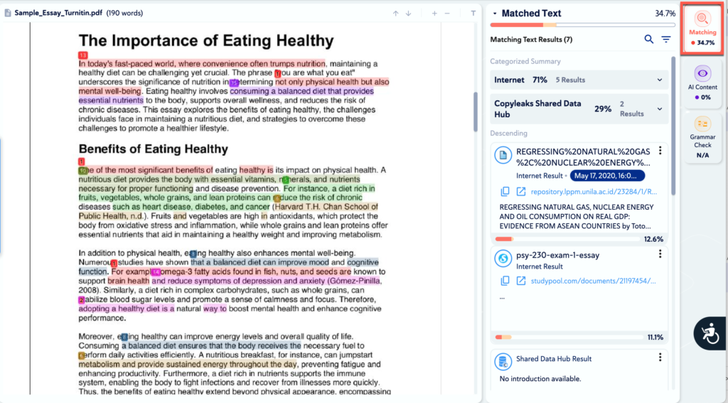 - When clicking on the plagiarism score, the user will be redirected to the report