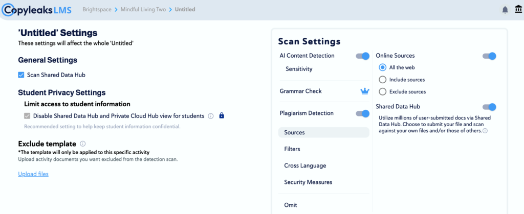 - Within the Copyleaks Assignment Asset Protector
