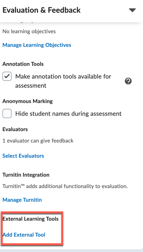 - Scroll down until you see External Learning Tools.