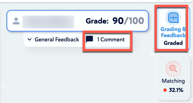 - If your instructor has added comments to your submission, you will see the comments under the Grading and Feedback icon.