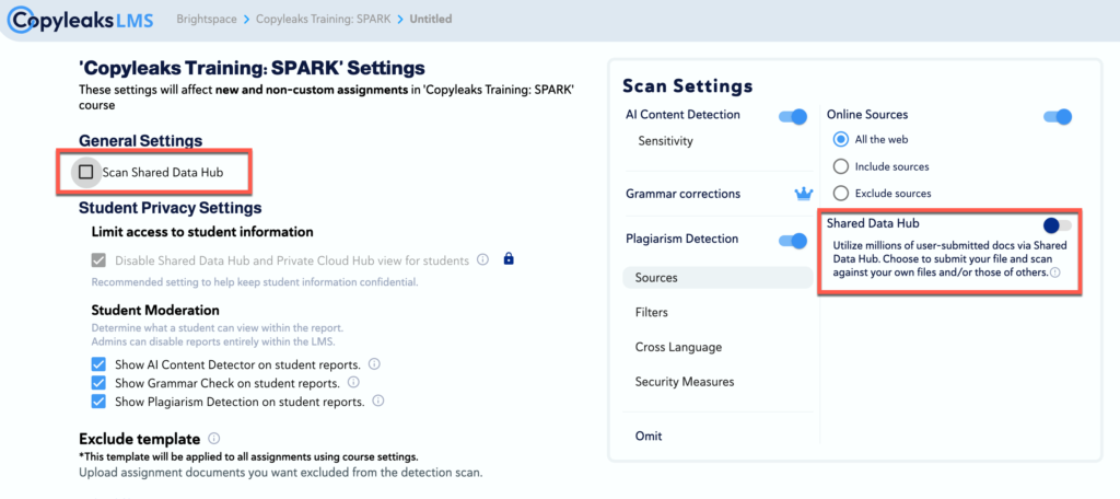 - Under General Settings, uncheck the box labeled Scan Shared Data Hub. This action will also disable the corresponding option under Shared Data Hub, as these two settings are linked and work together.